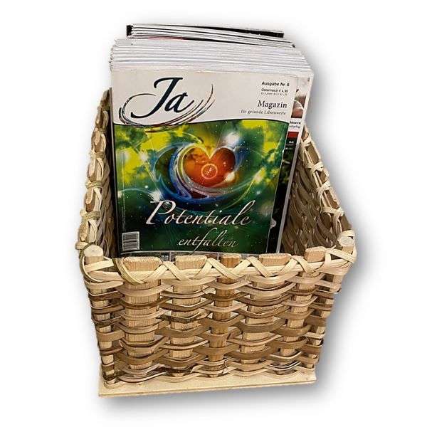 Handgeflochtener Korb für Zeitschriften aus Haselnussholz – Traditionelles Kunsthandwerk, robust, langlebig & stilvoll