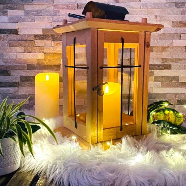 Originale Laterne aus Altholz und handgeschmiedeten Beschlägen