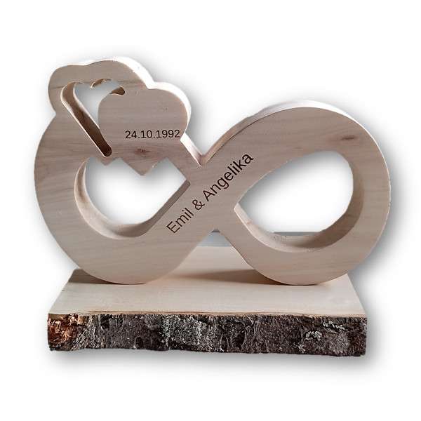 € 30,00Exquisite Unendlichkeitsschleife aus edlem Weidenholz! Perfekt für Verliebte und Liebende, auf einer eleganten Grundplatte montiert. Personalisiere sie mit einer individuellen Lasergravur und schenke ein Stück Unendlichkeit. Handgefertigt mit Liebe zum Detail – ein Geschenk, das für immer bleibt.